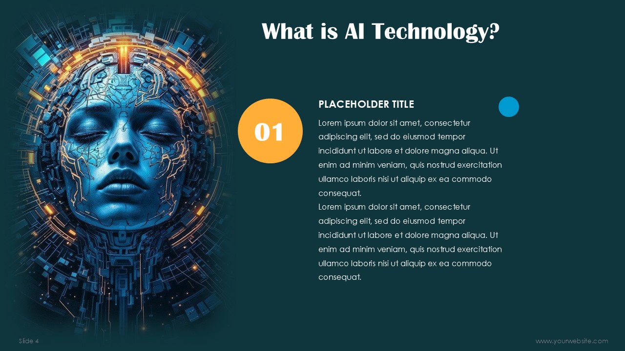 - Ideal for all kinds of AI technology projects, startups, and innovation presentations.