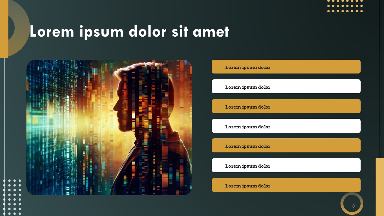 - Primary Colors: Golden (associated with innovation, intelligence, and value), Cyan (representing technology, analytics, clarity), Black Background (provides a technologically sophisticated contrast which enhances readability).