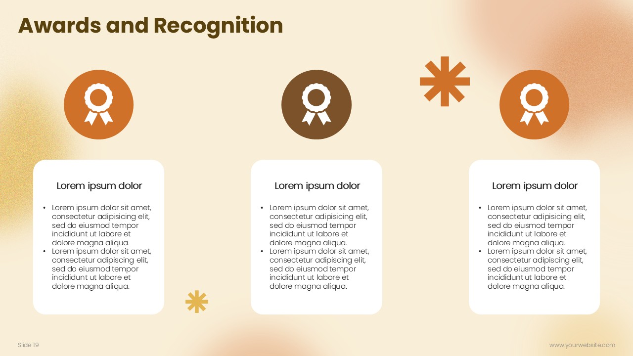 - Background: Modern sleek design put together using gradient effect with light brown as the base.