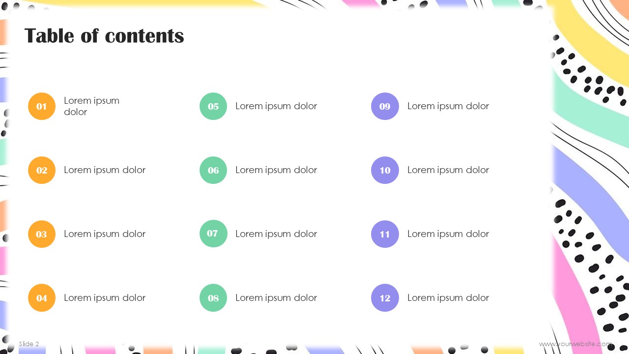 - Color scheme: Pastel Purple, Orange, Green, and Yellow – expressing creativity, energy, growth, and optimism.