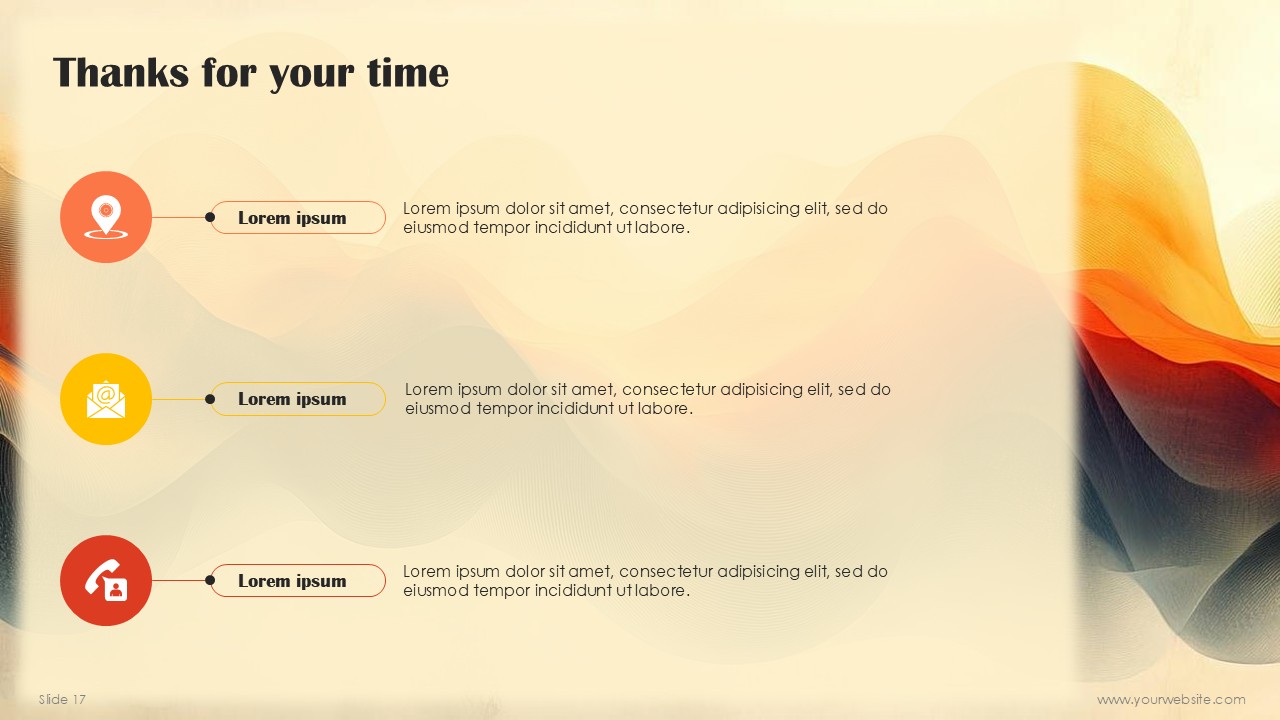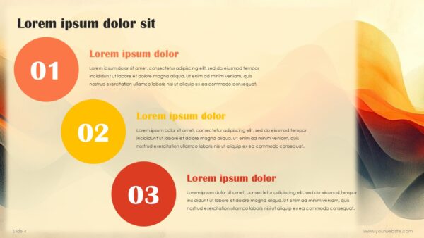 The Abstract Presentation Template of Free Creative Waves Dance is suitable for artistic creatives as it combines absolute beauty with functionality and can be utilized in business or marketing presentations as well as personal projects. The light background of the template is enhanced with brand logos and images for sharp modern business influences, while the eye-catching cover image showcases beautiful flowing waves in orange, red, and brown. The light yellow represents creativity, while calm and energetic readers maintain interest due to the background’s dynamic feel. This template is designed in 16:9 widescreen format, which is readily available in PowerPoint, Google Slides, and even Keynote transforming ease of use into customization.