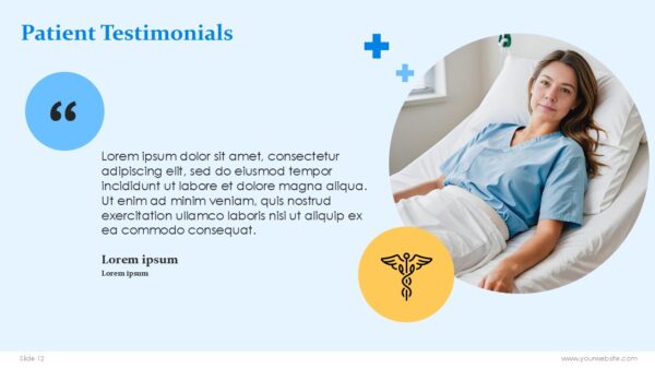 - Icons & Graphics: Geometric shapes and medical icons such as stethoscopes, syringes, and ECGs.