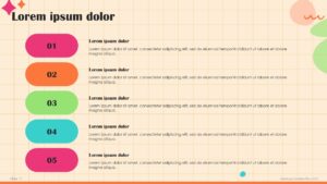 - Light orange background with orange (energy), green (growth), pink (creativity), and cyan (innovation) accent colors.