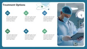 - Icons & Graphics: Operating room equipment, data presentation, surgical team imagery and clean text graphics.
