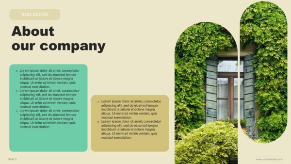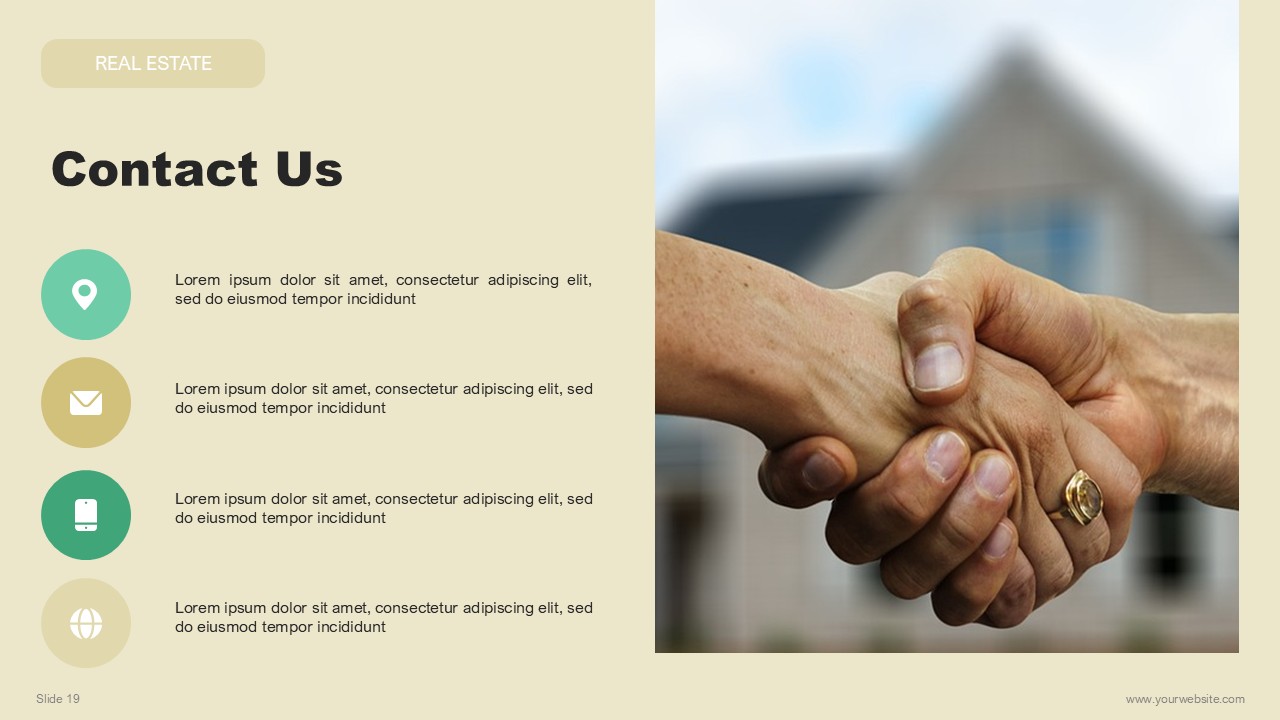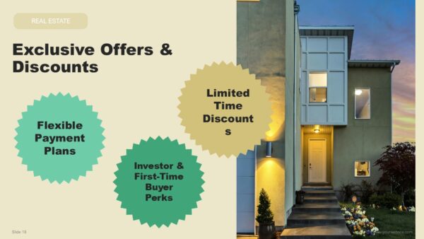 - Eye catching design and structure along with ease of use for real estate meeting presentations.
